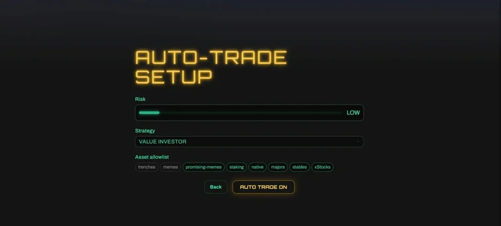 We could define risk tolerance, profit targets, token types, and exposure limits, then step back entirely.